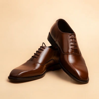 Cobbler & Kolachi presents Whole-Cut blue Patina Oxfords for men, embellished with blue patina handcrafted calfskin leather, handmade shoes that complement the dress.